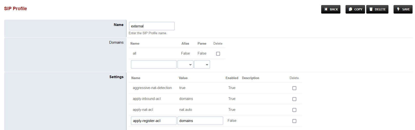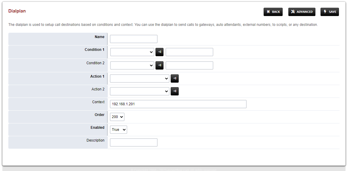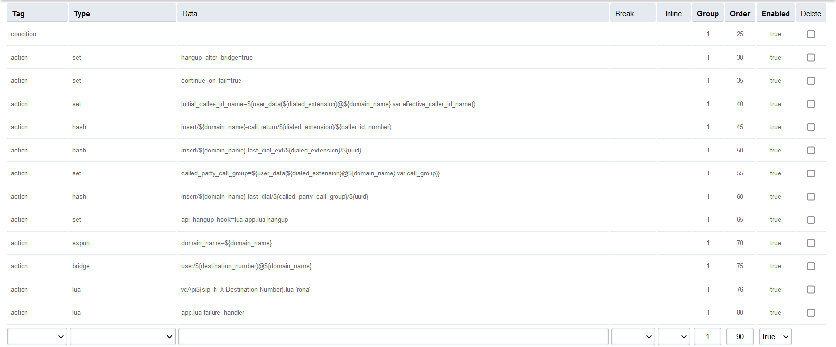 Note that the new line must be AFTER the bridge user/${destination_number}@${domain_name} line so if the Order of that line is 75 then the new line must have order 76 (as shown in the image above)