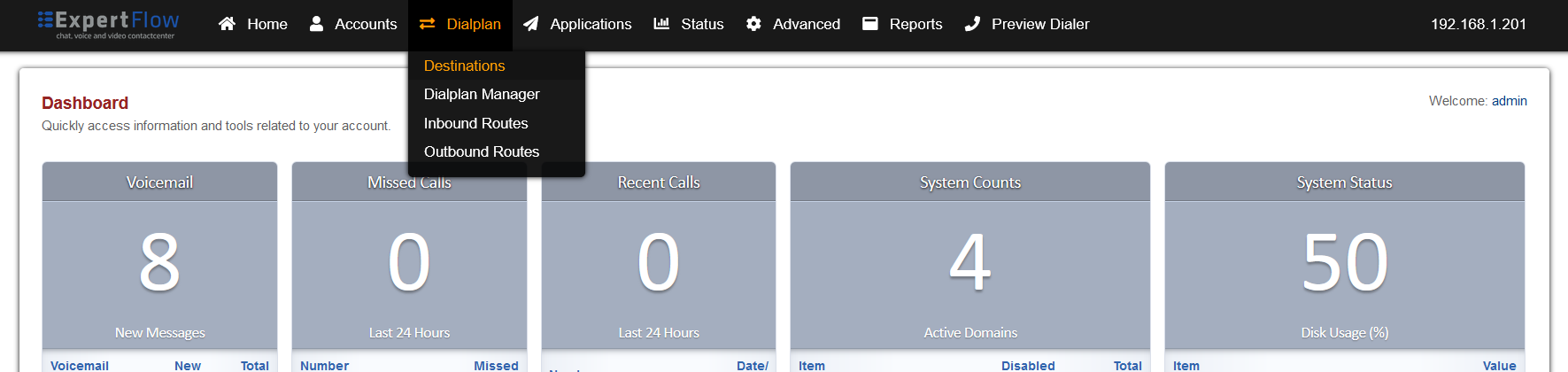 In the Destination field set the inbound dialing number provided by the SIP trunk provider.