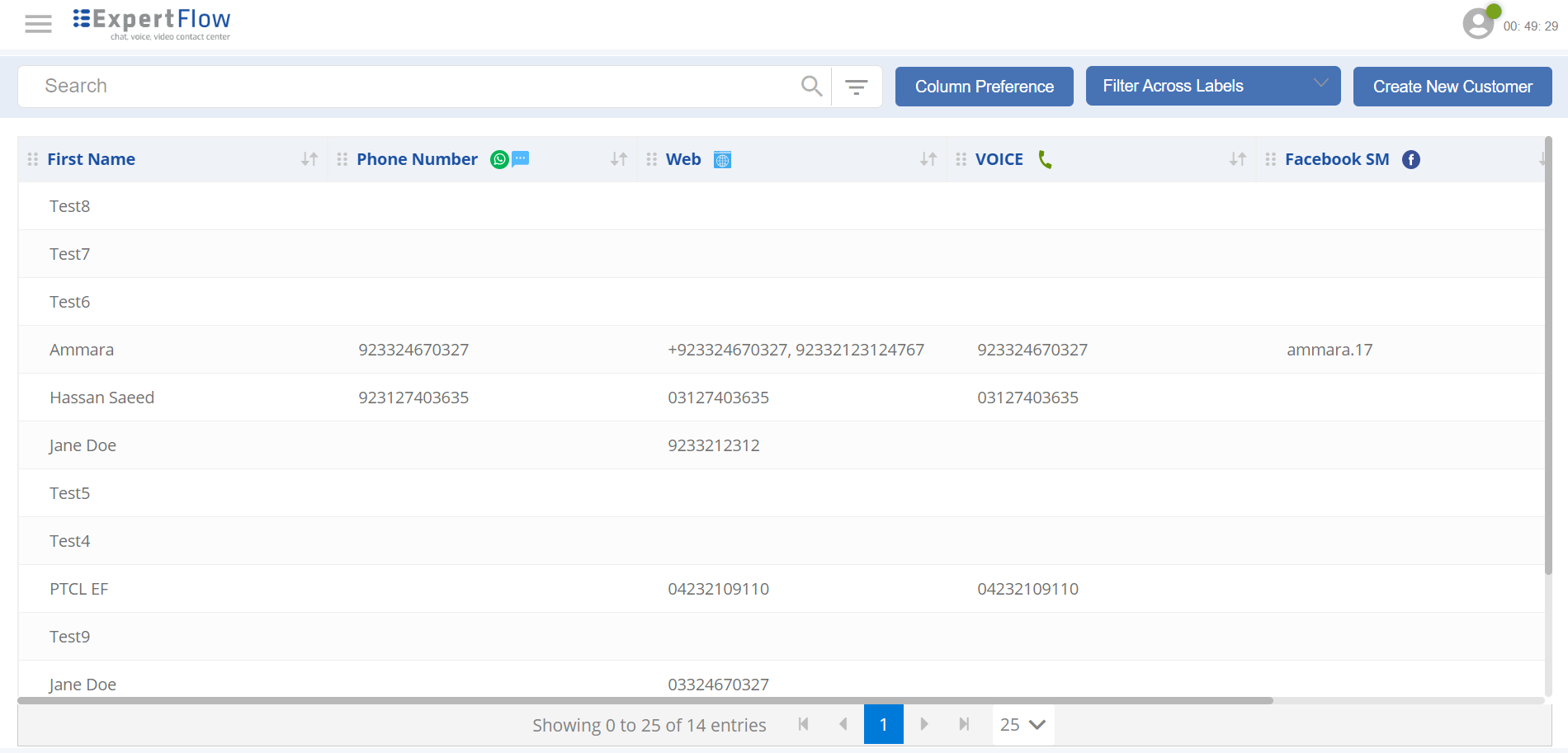 To understand the Customer List and all operations on the List view, see Agent Guide -> Customer List.