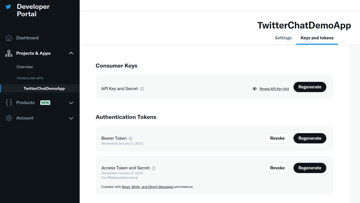 After you have generated the Keys and Tokens, save all these credentials (Api Key, Api Key Secret, Access Token, Access Token Secret, Bearer Token) as these will be shown only once when generated. If you misplaced or forget it, then you need to re-generate them which will invalidate the previously generated credentials. These token and keys will be used later on while setting up the application in CIM Unified-Admin.