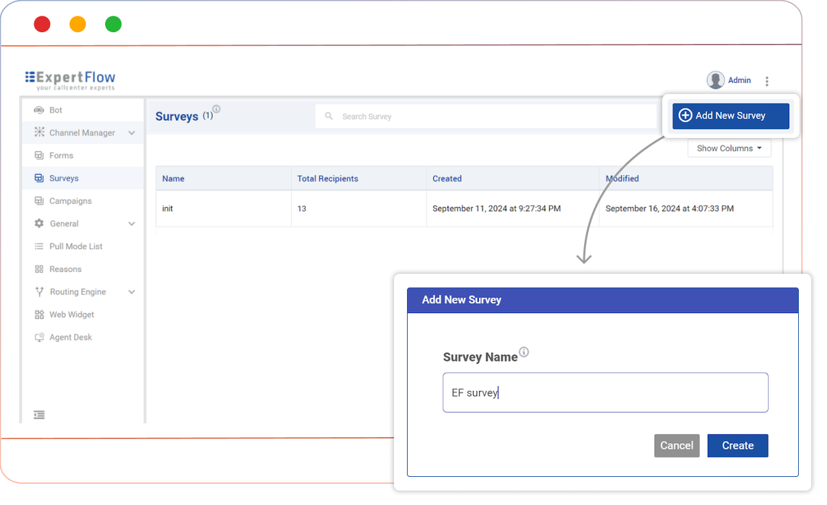 Enter a name for your survey (e.g., "EF Survey"), then click on the “Create” button.