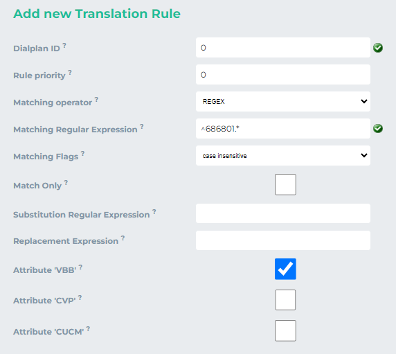 This indicates that when the DN 686801 is matched, the value of $avp(dest) is set to 1. Consequently, when this DN is dialed, the request will be routed to VBB.