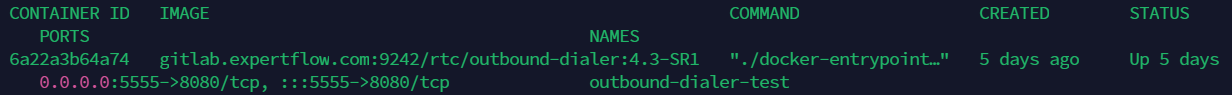 CODEversion: "3" services: outbound-dialer: image: gitimages.expertflow.com/rtc/outbound-dialer:TAG container_name: outbound-dialer ports: - 6666:8080 env_file: - docker-variables.env restart: alwaysReplace the 'TAG' keyword with the required image tag obtained from the releases page here.