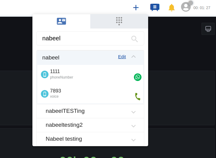 Agents can enter the number they wish to dial through the dialpad. On entering the number, a customer list will be shown matching the entered digits to find the customer along with the name if it already exists.