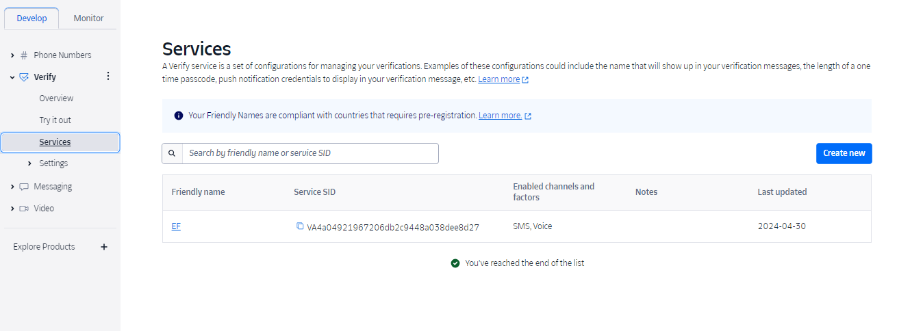Here is the step-by-step guide to set up Twilio’s Verify Service using Twilio’s console and extract required information: