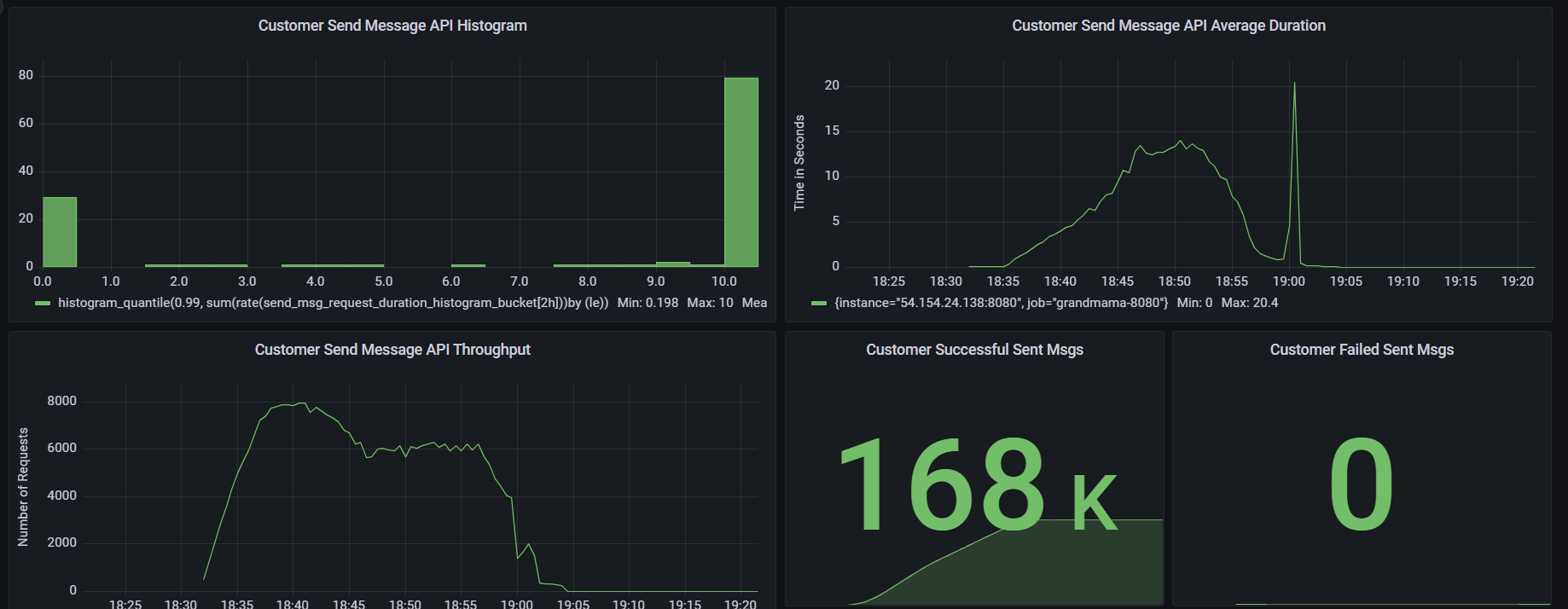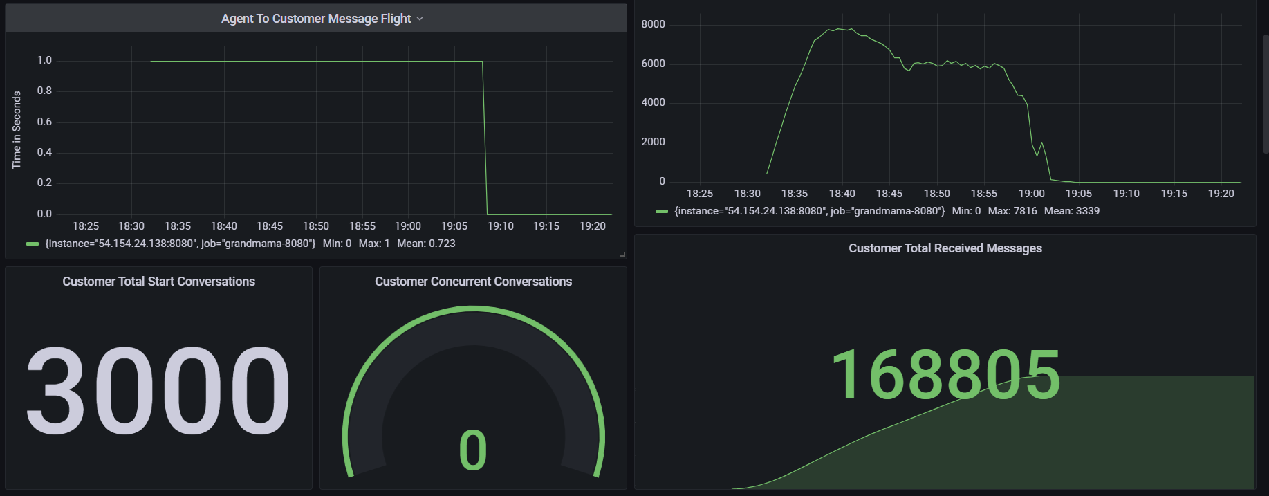 Test Scenario | 4 conversations per second. Total 3000 conversations will be initiated in 750 seconds, every chat will have a message in every 5 seconds, conversations will be closed by agents eventually |