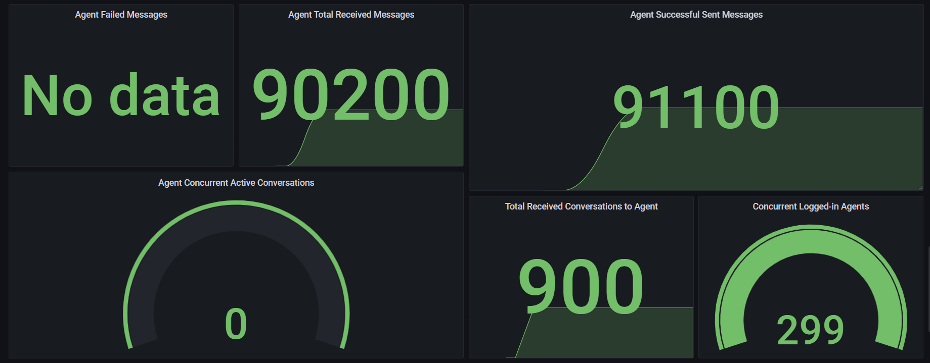 300 Agents with 1 Conversation per second and 1 Message every 5 seconds per Conversation