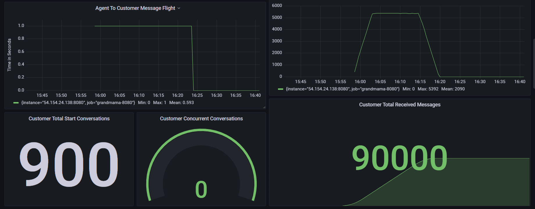 300 Agents with 3 Conversation per second and 1 Message every 5 seconds per Conversation