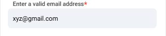 A valid email address format is required. It includes letters, numbers, dots, and special characters like Examples: