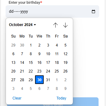 Pre-Conversation Form fields validation patterns for each Question in the Customer Widget