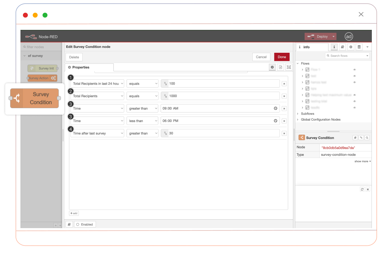 ii) Survey Condition: Use to add condition that a survey needs to follow.