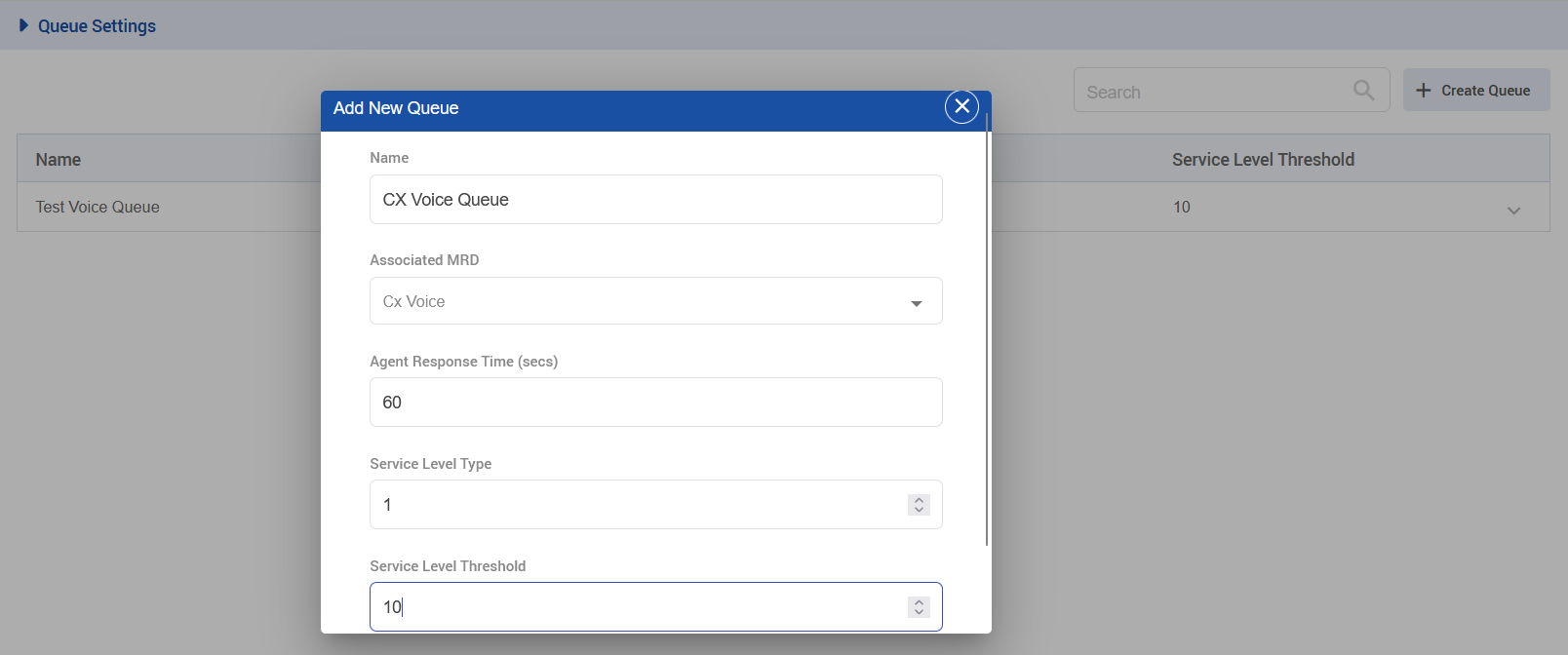 Create a CX Voice Queue with the following settings.