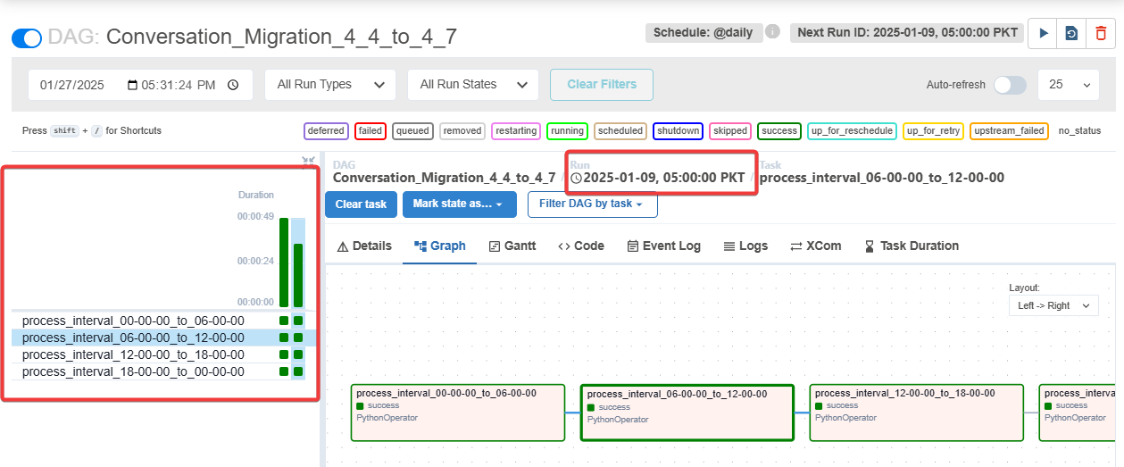 start_dateas configured in the yaml file (Refresh the tab till the changes reflects)Switch to Graph, next to Details tab (Refer to figure 1.) to see the graphical view, this will show you the interval wise task as set within the config file