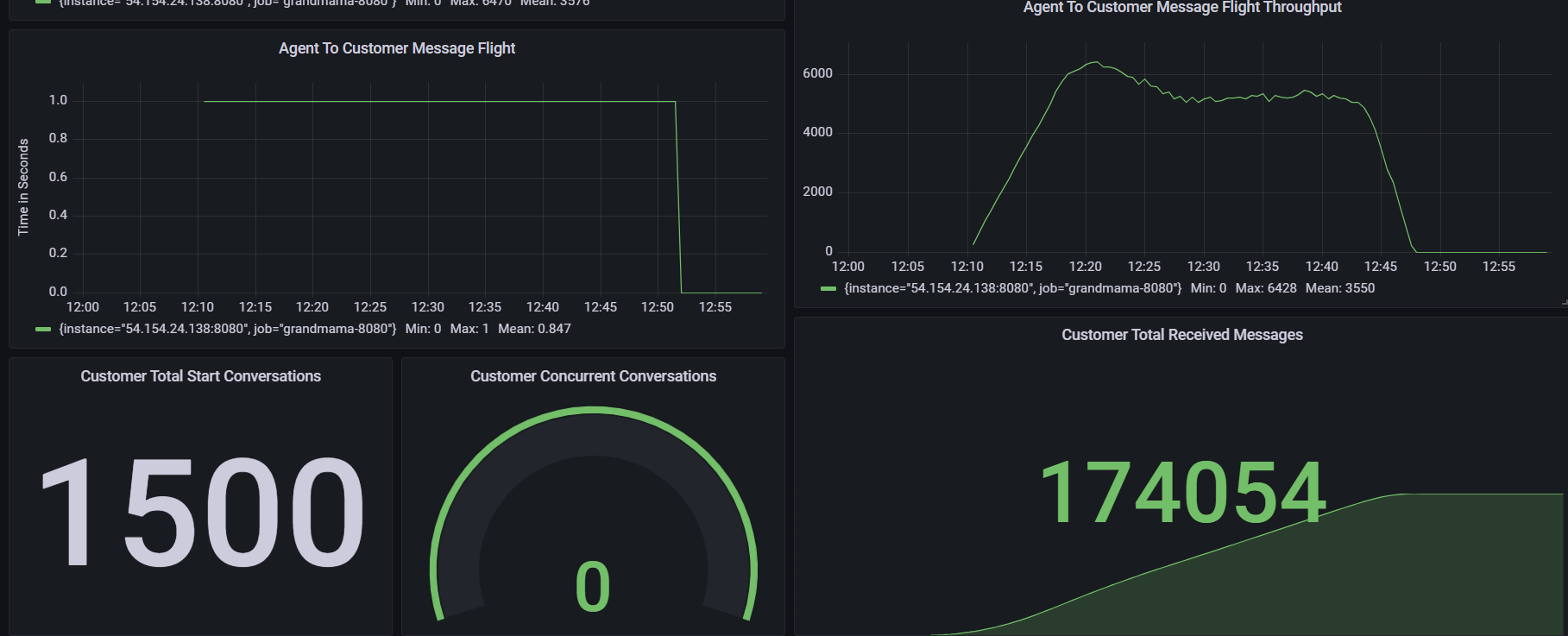 Test Scenario | 2 conversations per second. Total 1500 conversations will be initiated in 750 seconds, every chat will have a message in every 5 seconds, conversations will be closed by agents eventually |