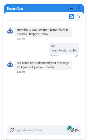 Is developed by Expertflow as a sample implementation of the web channel. For deployment/hosting of the customer widget, follow this Deployment Guide. For access to the agent panel please refer to the Agent Capabilities.