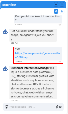 Plain Text MessageThe customer can send/receive plain text messages. The maximum character limit is 4096 characters. | ![]() |
