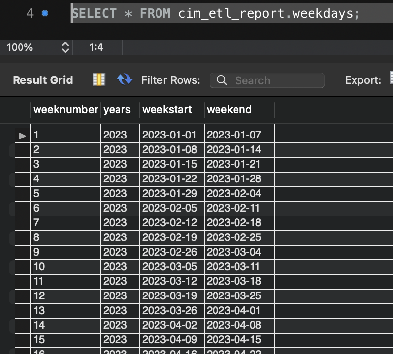 This table is used to provide us the data of week number , year , week start date & week end date. We are using this information in multiple reports including "Queue-wise Stats Summary Report" & "Historical Conversation Summary Report". A stored procedure is utilized to generate data for this table.