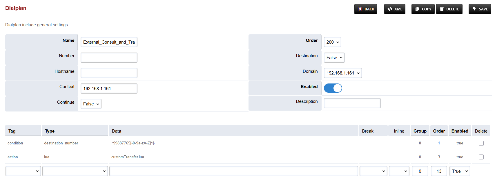Change the value of the Type column in the Action row to lua and the Data field to customTransfer.lua