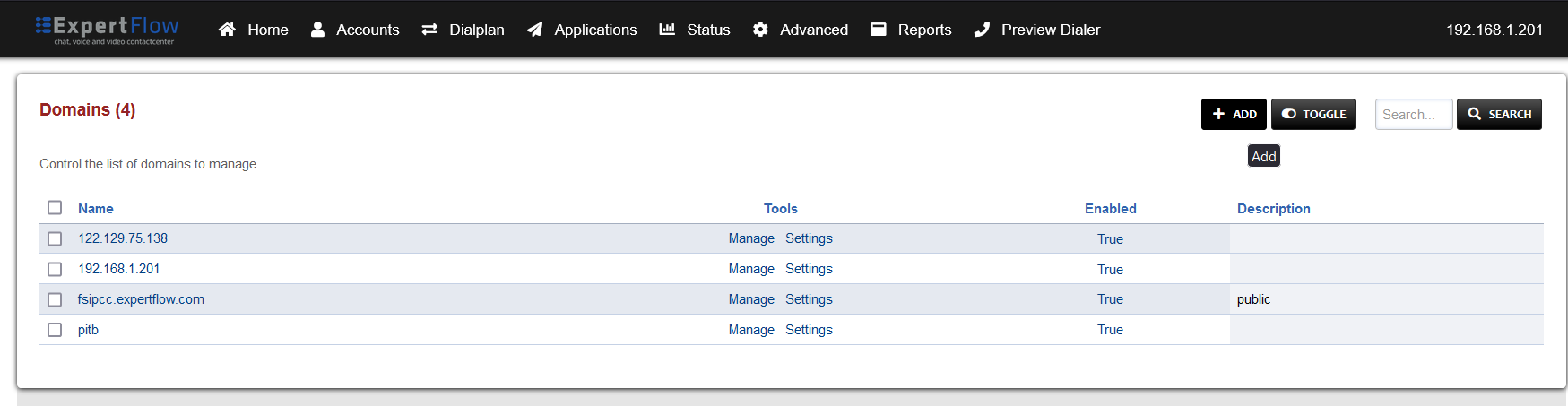 The IP address of the server the Dialer is running on e.g. 192.168.1.106.