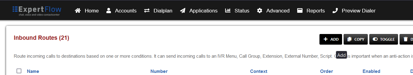 Open the Inbound Routes section under the Dialplans tab.