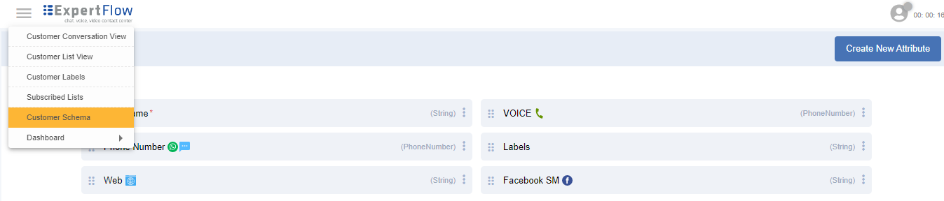To do this, login to Unified Agent Console with Admin access. Click Unified Agent → Customer Schema → Create New Attribute. Following table lists the fields. A sample of the filled form is provided on the right-hand side.