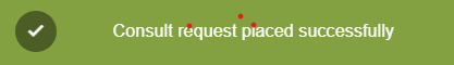 Upon clicking the button, the request is forwarded to the dialed number, and a notification with the message "Consult request placed successfully" is shown to the user.