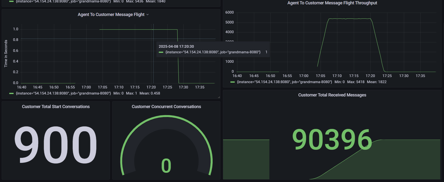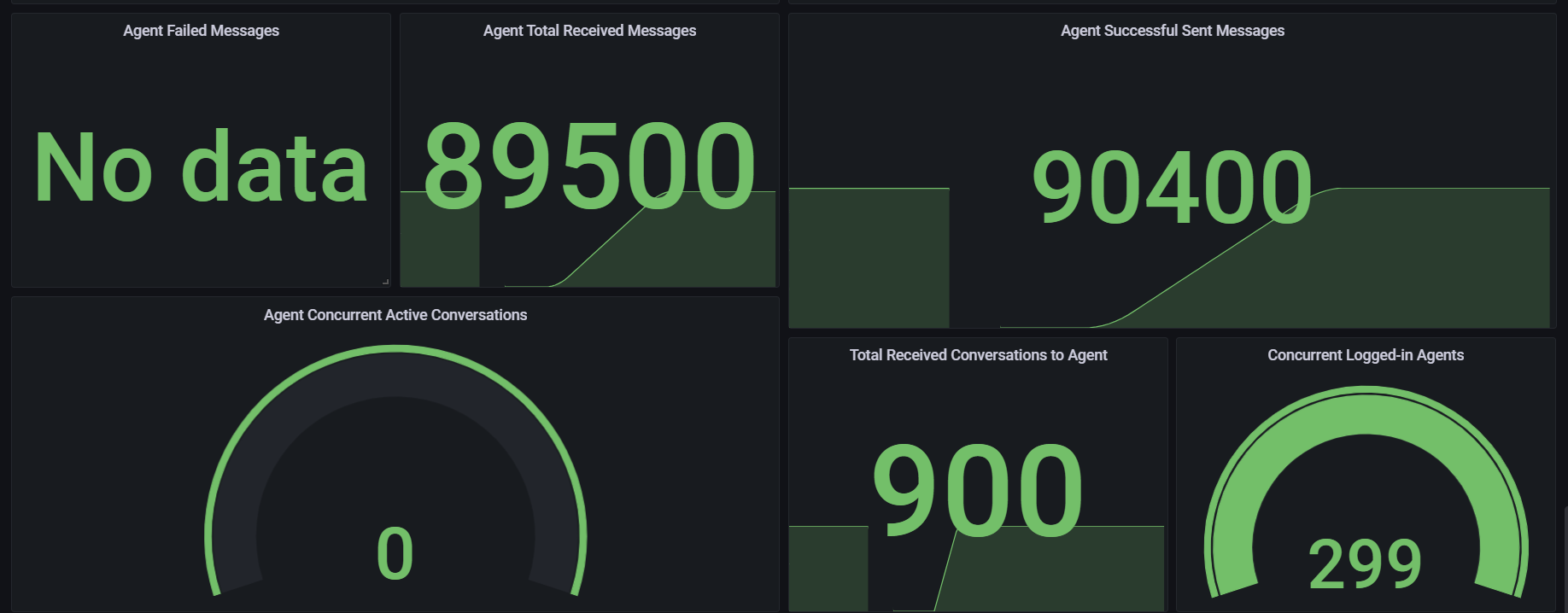 300 Agents with 4 Conversation per second and 1 Message every 5 seconds per Conversation