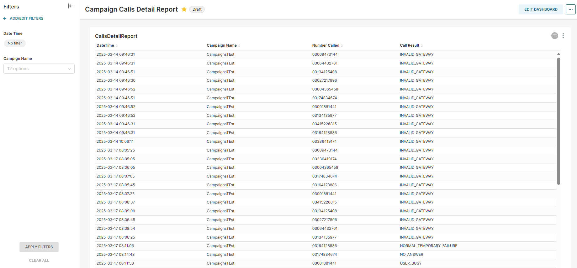 Report Summary | Shows the calls attempted by the dialer and not connected with the end user for any reason. The report includes agent-based and IVR-based campaign calls. |