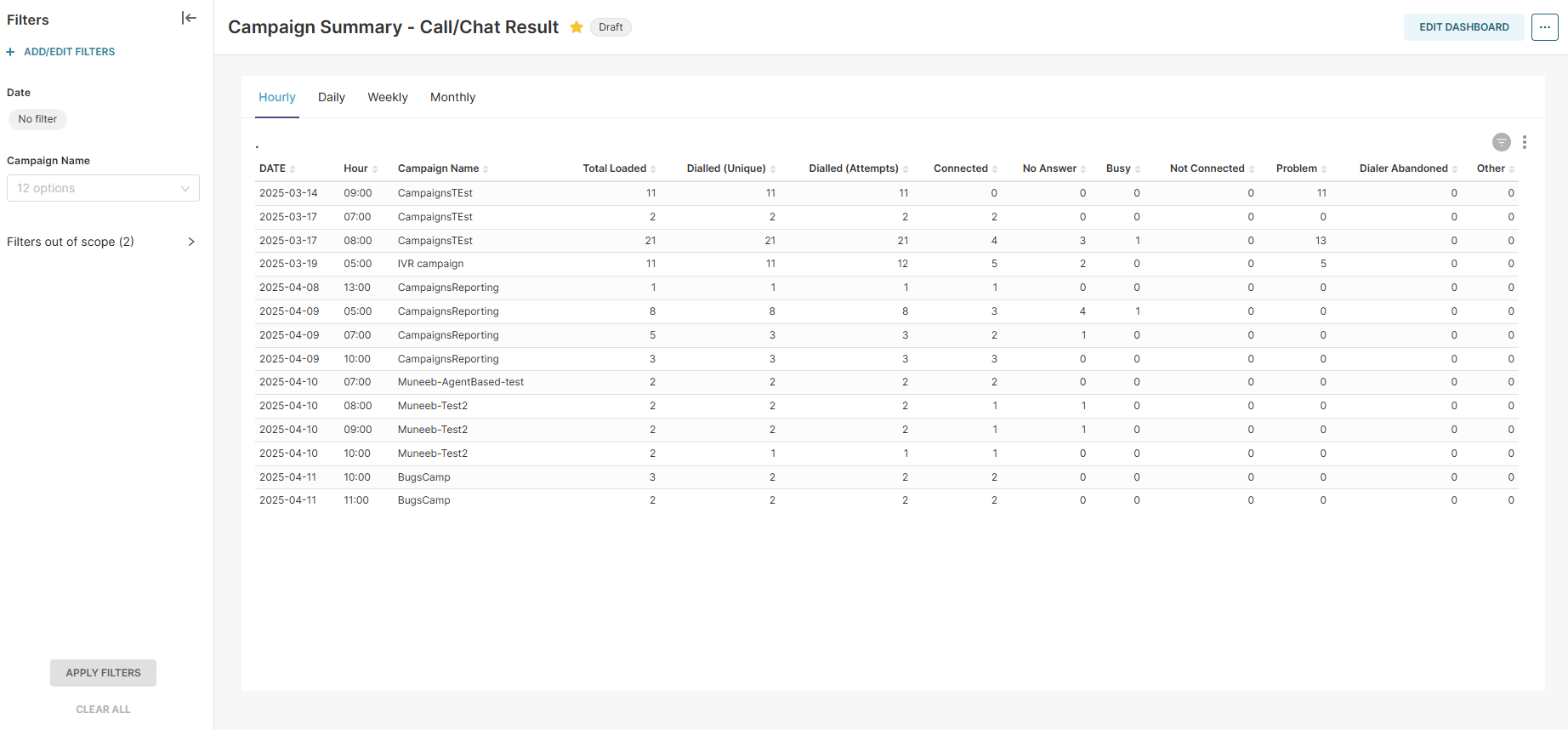Dialed (Unique) | Total number of dialed (unique) contacts. |