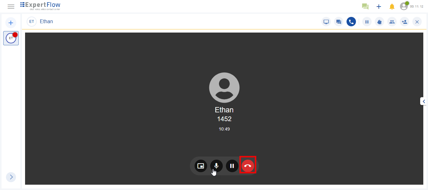 The agent can end a call using the End Call button. This will end the call leg between the agent and the customer.