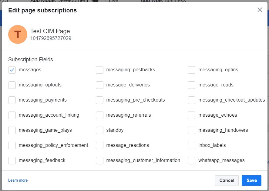 In response to this request, you will see fields that are added as subscriptions. If it contains "messages" & "feed" both then no further action is required to do. If not then perform the below step to update it to receive "feed" & "messages" both.