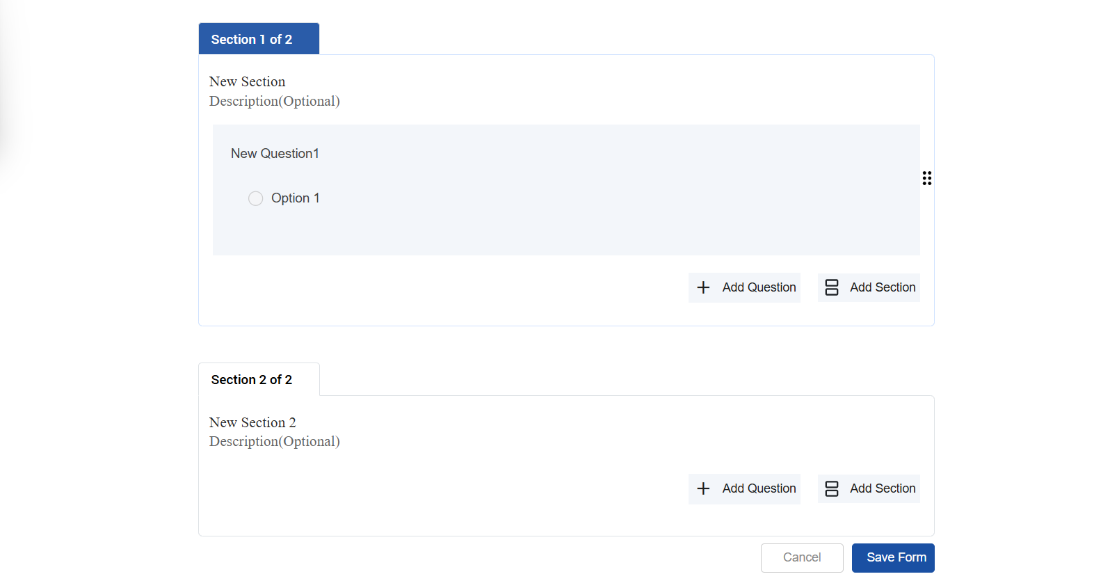 To create a new form, click on the new form button. We will now see a menu with title ,description of form containing options for editing of form.