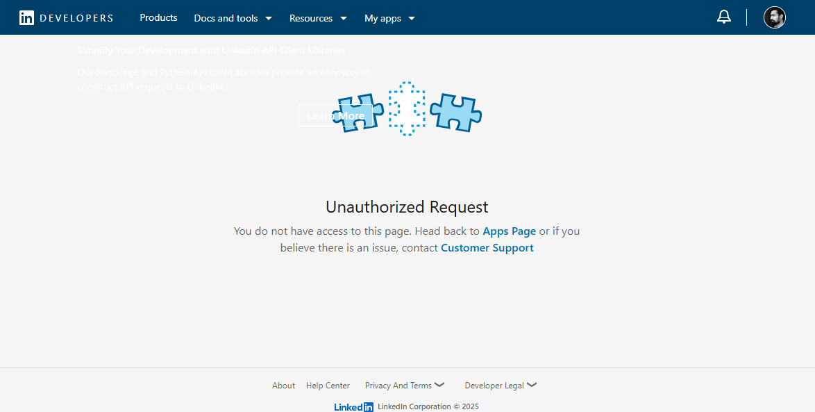 Open the LinkedIn Developer Portal in your browser.