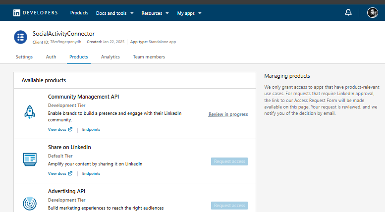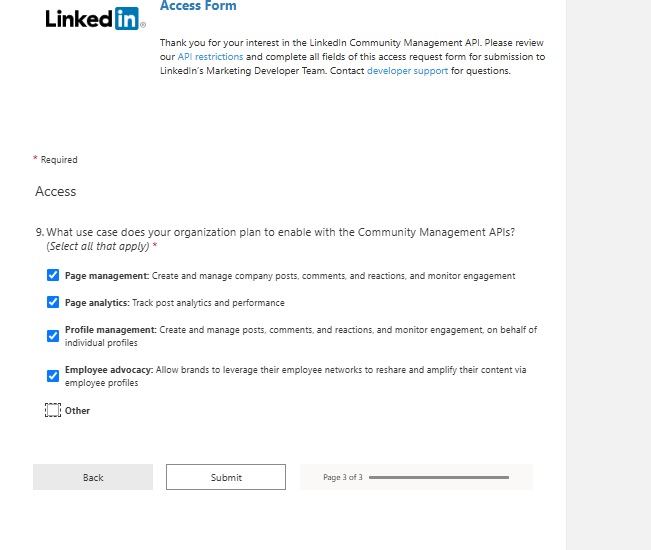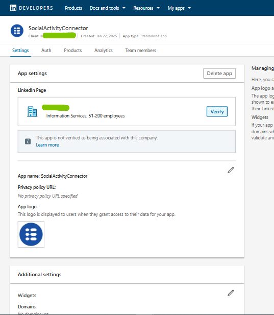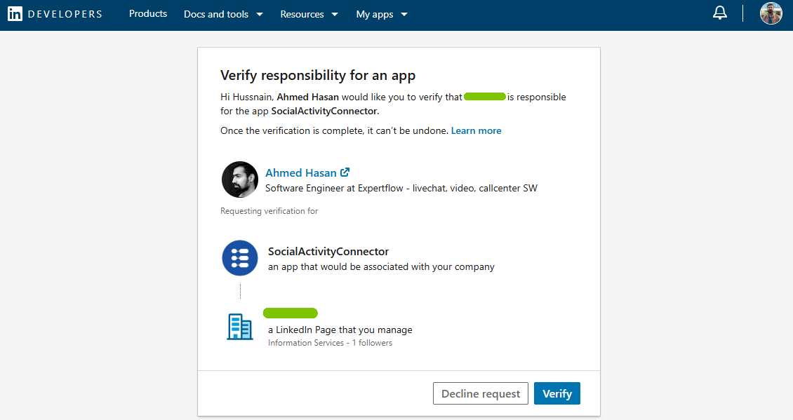 The purpose of this document is to walk you through the steps required to register and configure your LinkedIn App and verify your LinkedIn Page. By the end of this guide, your LinkedIn application will be fully connected to your LinkedIn page, allowing it to manage your LinkedIn content using LinkedIn's API.