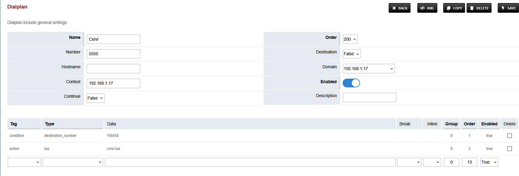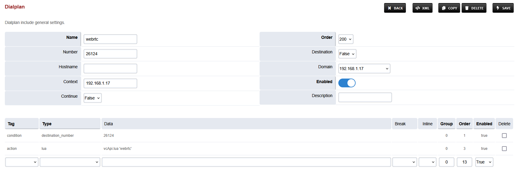 Add a new Dialplan by pressing the Add Button on the top.