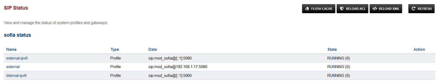 Locate the line sofia status profile internal and to its right press the RESCAN button, followed by the RESTART button after the page reloads.