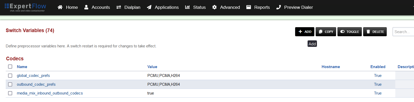 Add a new Dialplan by pressing the ADD Button on the top.