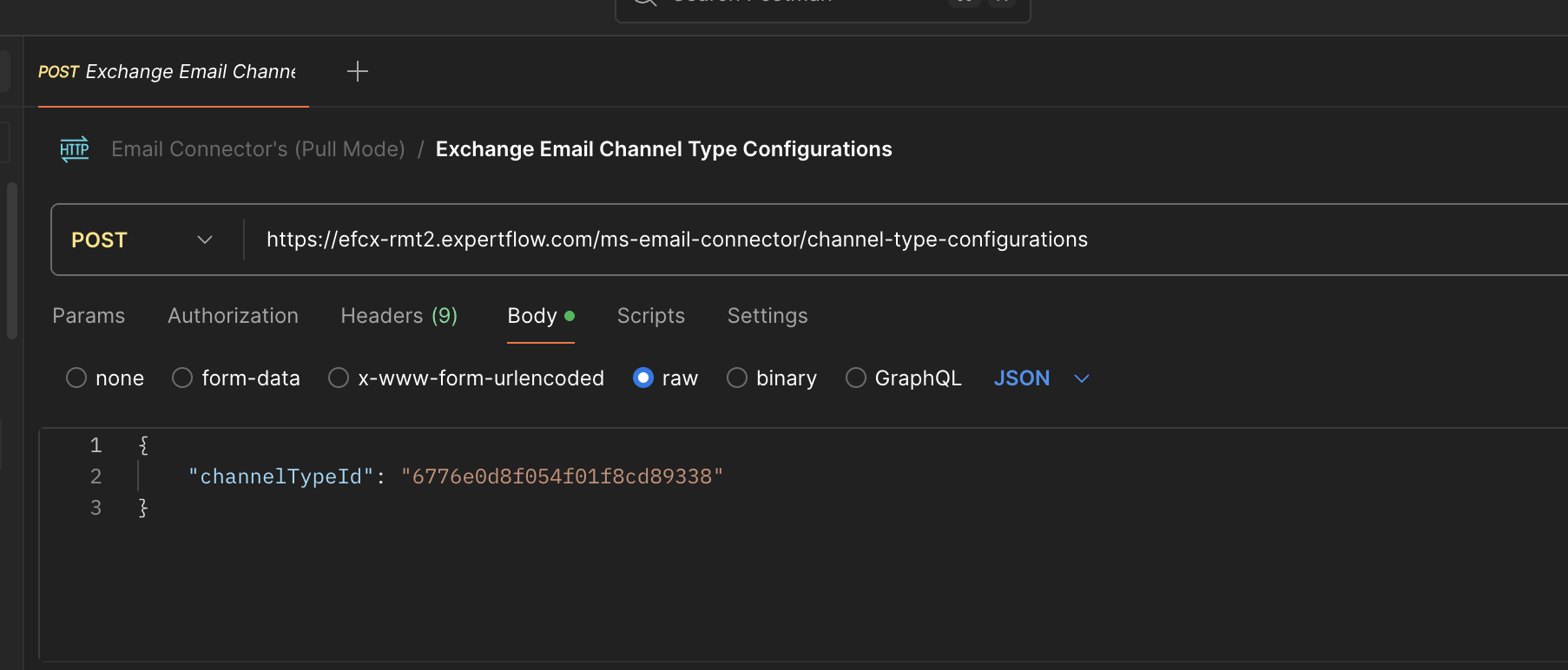 Note: You can fetch the ChannelTypeId from this channels list API, and search for the EMAIL channel Type from the list and then use that ChannelTypeId.