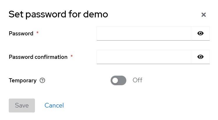 Fill out the password and confirm password fields and make sure to toggle off Temporary otherwise you user will be deleted after certain time as it will be temporary user. After that click and Save. You will again asked for confirmation, click on Save Password.