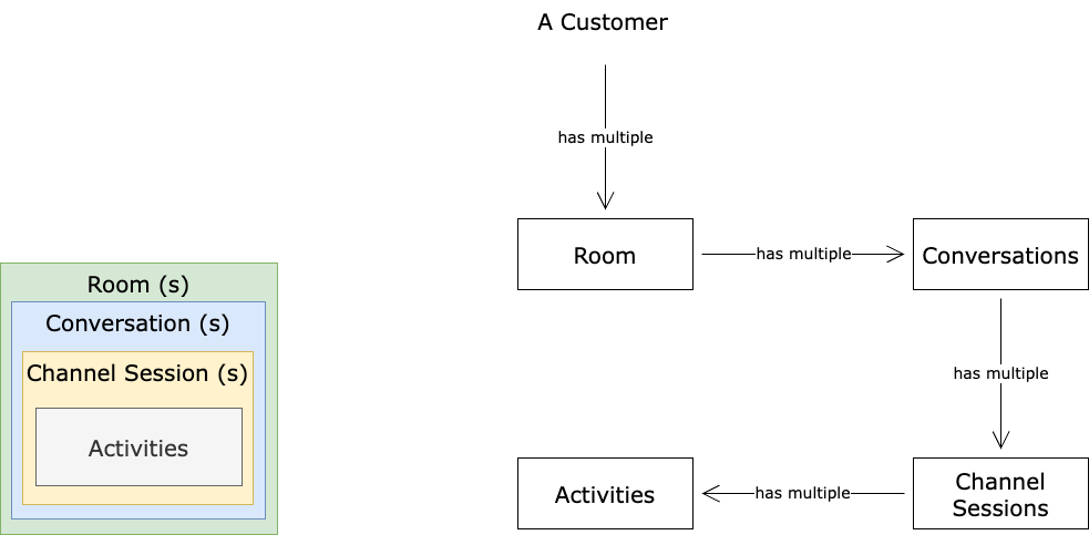 In most scenarios and a typical contact center, each customer only has one room (typically the room where a customer interacts with customer service). The reason for introducing rooms is that one might have different restricted spaces where a customer interacts with multiple parts of an organization (for example private banker vs general IT support) . Access to a room can be given to agents/ supervisors and bots on a need basis (for example permanent access for a private banker, temporary access to a contact center agent).