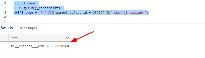 Note down the result (e.g., PK__channel__abc123).