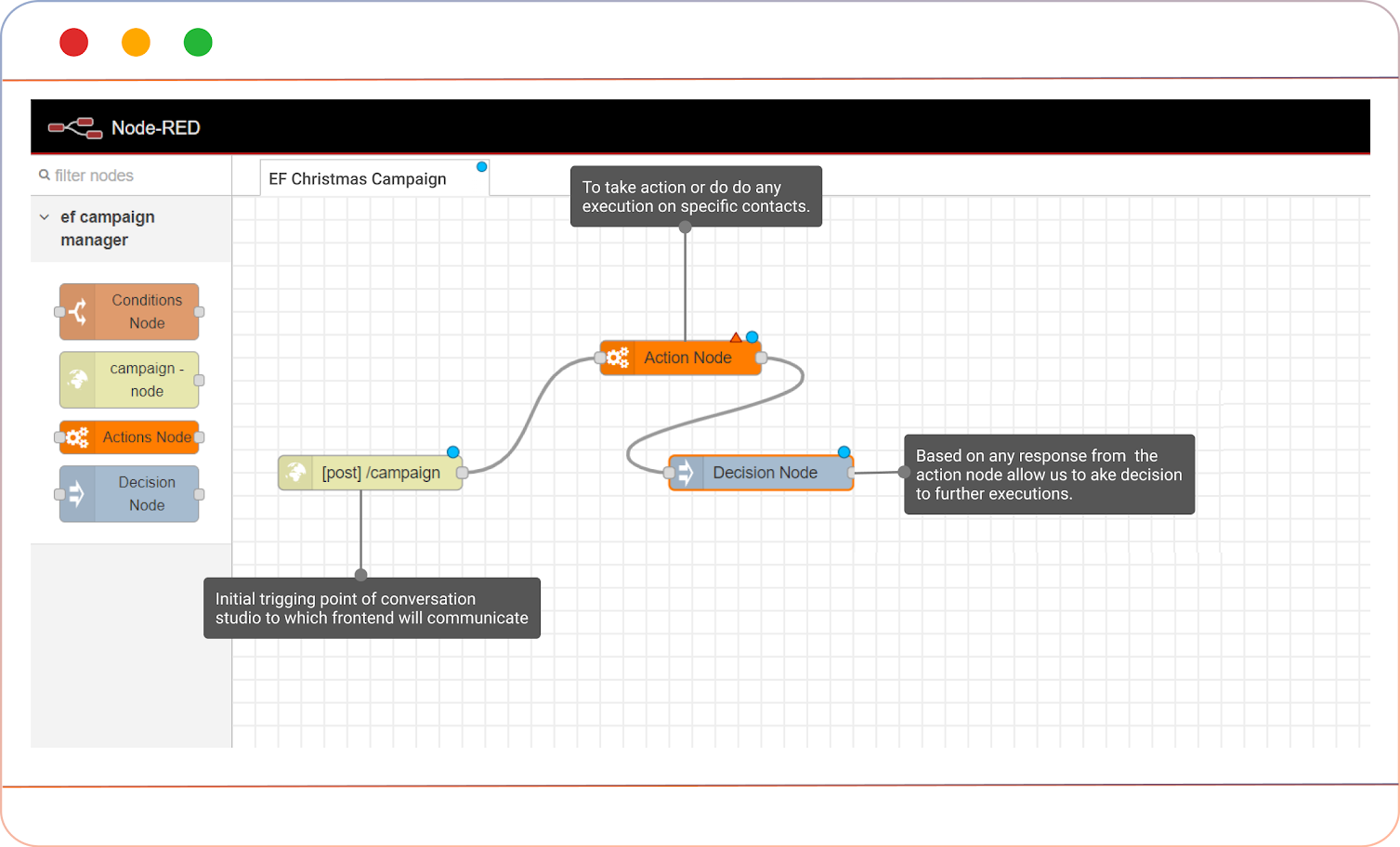 For the campaign manager, we’re mainly focusing on three types of nodes, which are mentioned below:
