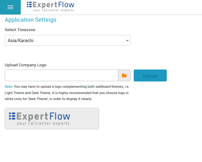 Under the Settings menu, select the timezone for the dashboard for historical data, the default time zone is UTC if you do not select any timezone. and click the folder icon to select an image file for your corporate logo.