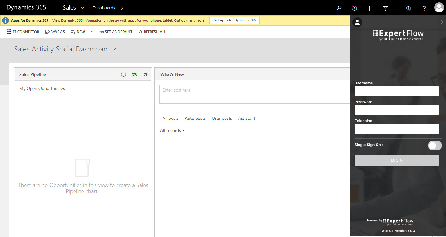 - Refresh CRM then EF CTI Toolbar should be visible on the top right corner