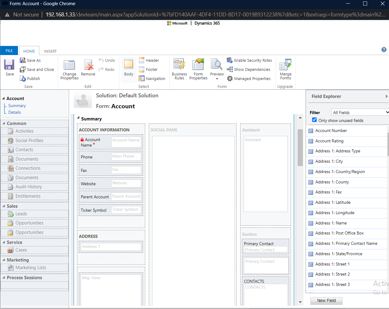 - From point 3 repeat the same for all the other remaining forms like Account Quick Create form of Account entity.
