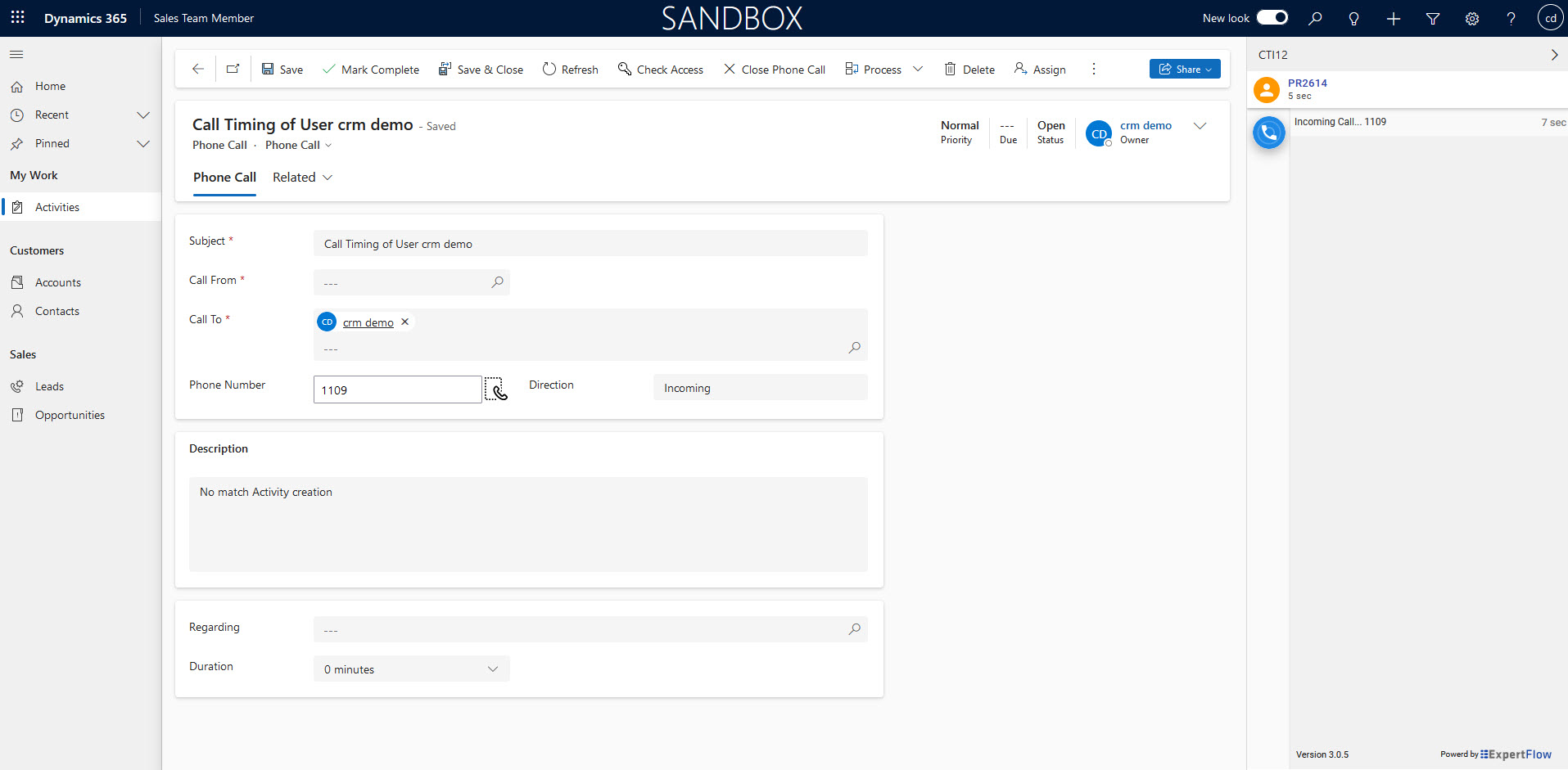Note: If we configure to create a new account/contact or lead then the phone call activity is not logged in this case.