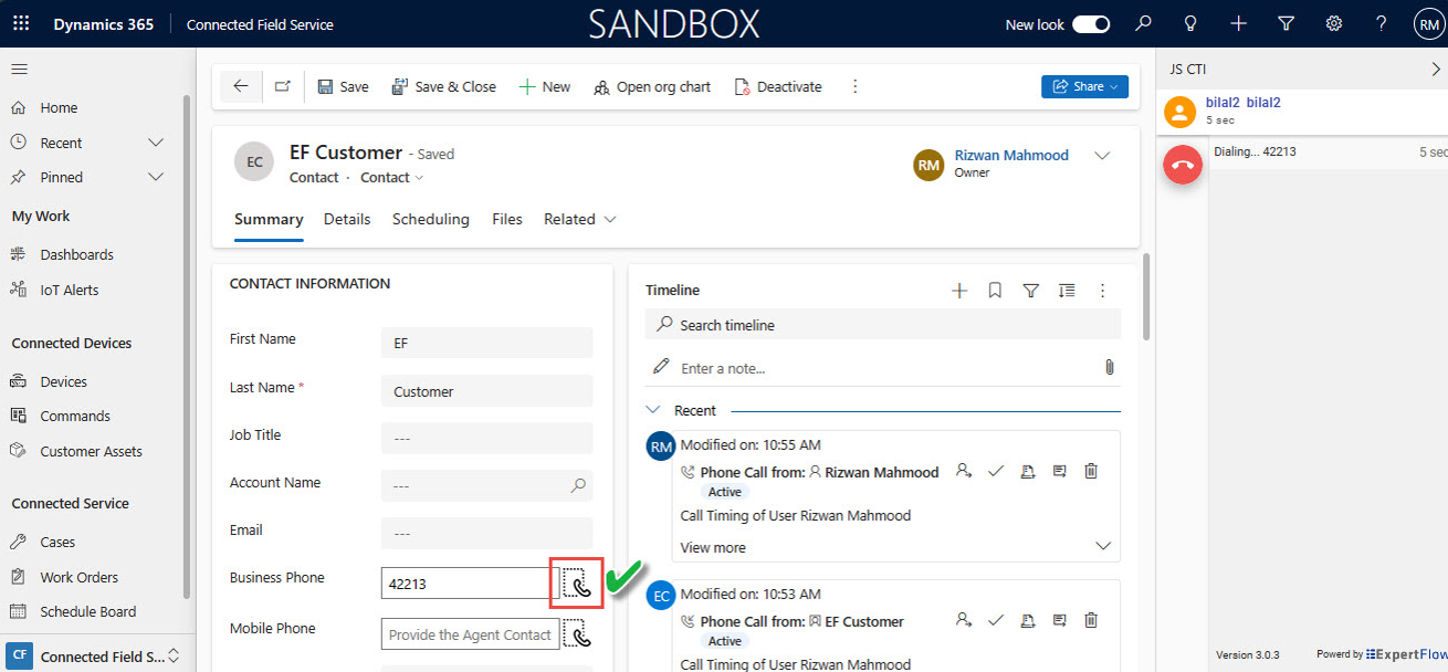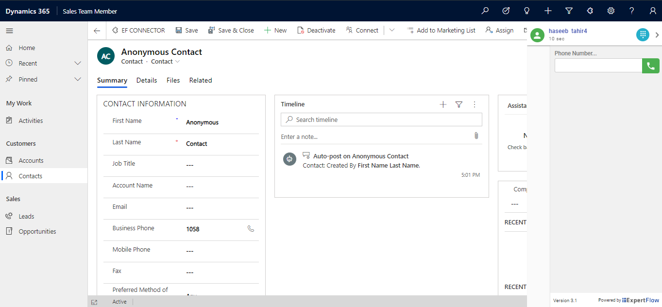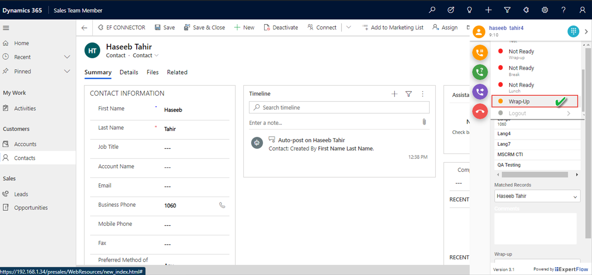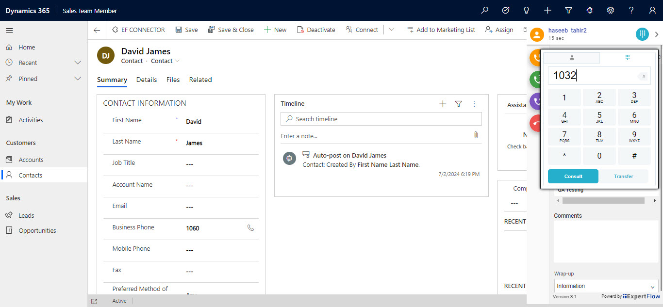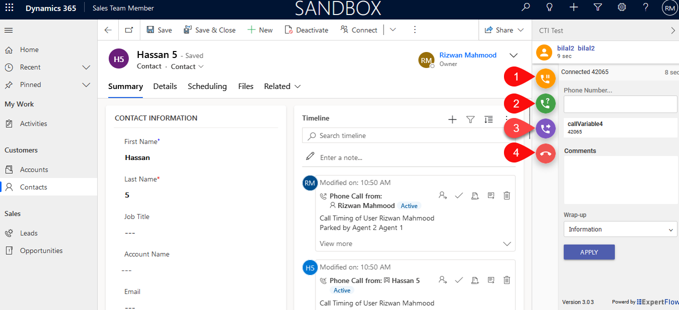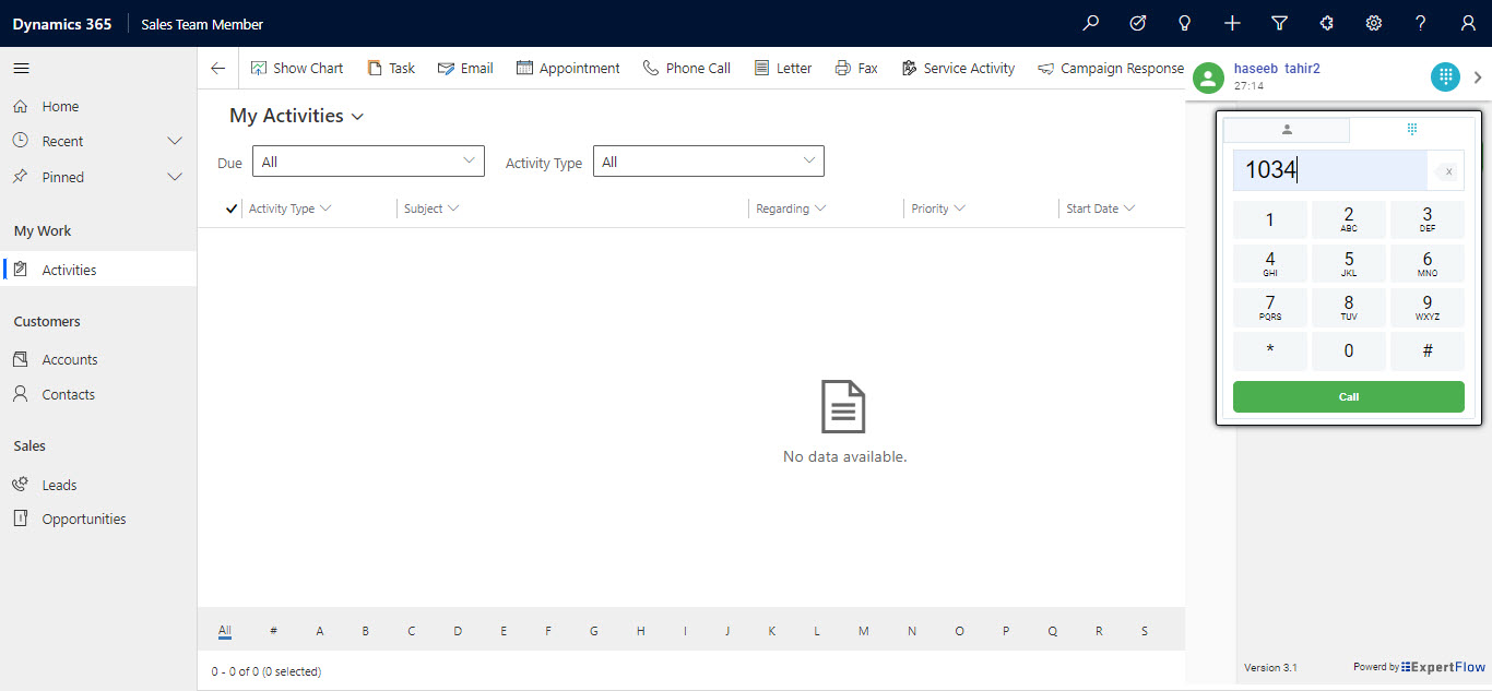 Microsoft Dynamics Web-based CTI Connector enables an agent to perform multiple actions to handle customer queries.