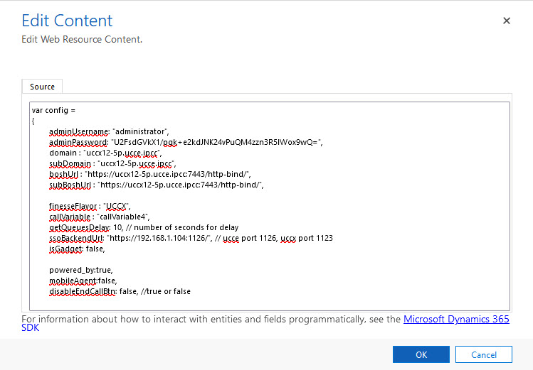 25 | ssoBackendURL | https://192.168.*.*:8084 | Javascript CTI Toolbar supports Finesse SSO login as well, and for that EF has developed its own Utility which needs to be deployed First. The Deployment Guide for SSO is available here. Once you deploy that Utility, you can then provide the link here. If Finesse is not SSO enabled, please ignore this property | ||||