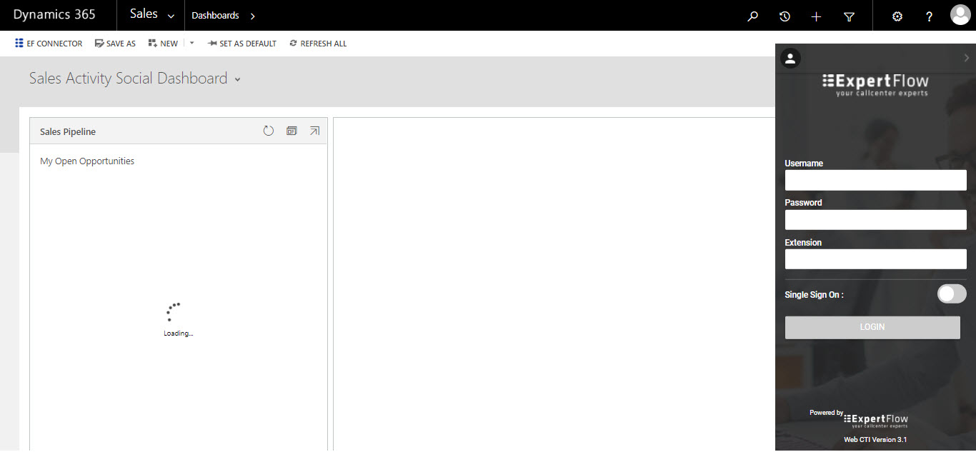 Refresh CRM then EF CTI Toolbar should be visible on the top right corner