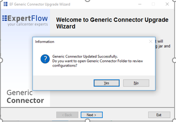 - Click OK. It will upgrade the existing GC with old configurations. It will ask you to review the configuration file. You need to ensure that all the newly introduced parameters are available in GC Config. Click Yes to open the installation folder. See Generic Connector Configuration.